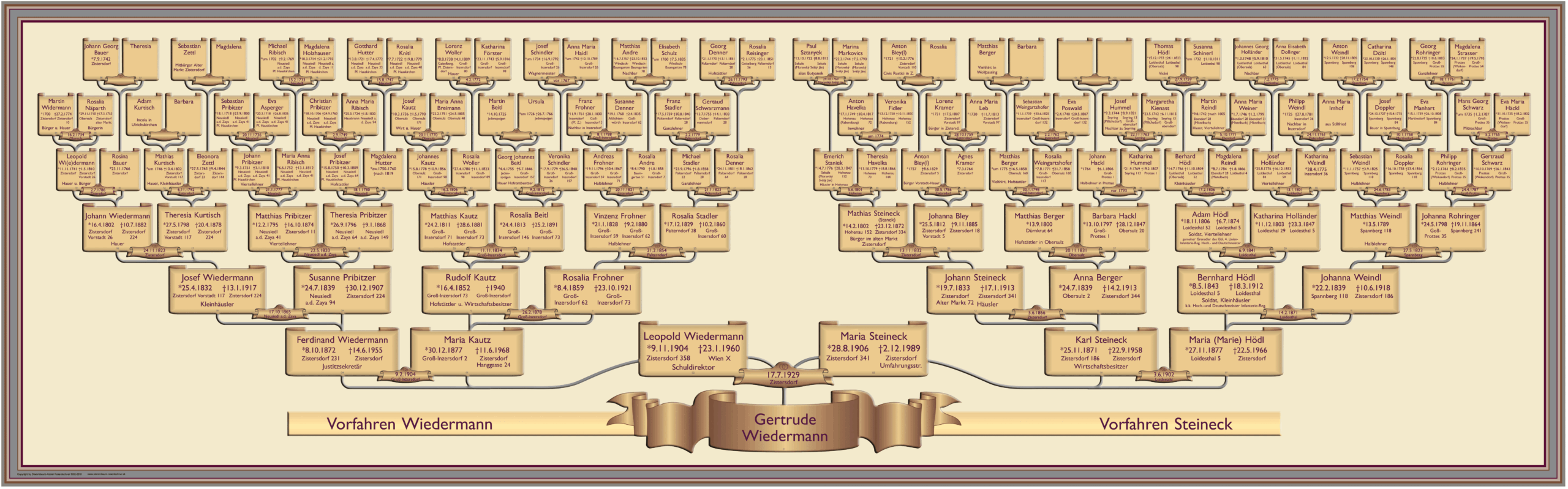 Ahnentafel 7 Gen. 129x40cm Stammbaum-Atelier Rosenlechner