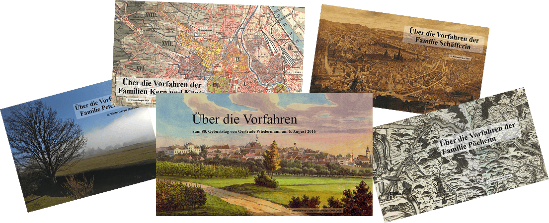 Die Matriken der Pfarren (Kirchenbücher) mit den Tauf-, Trauungs- und Sterbedaten stellen die wichtigste genealogische Quelle dar. Darüber hinaus verwende ich: