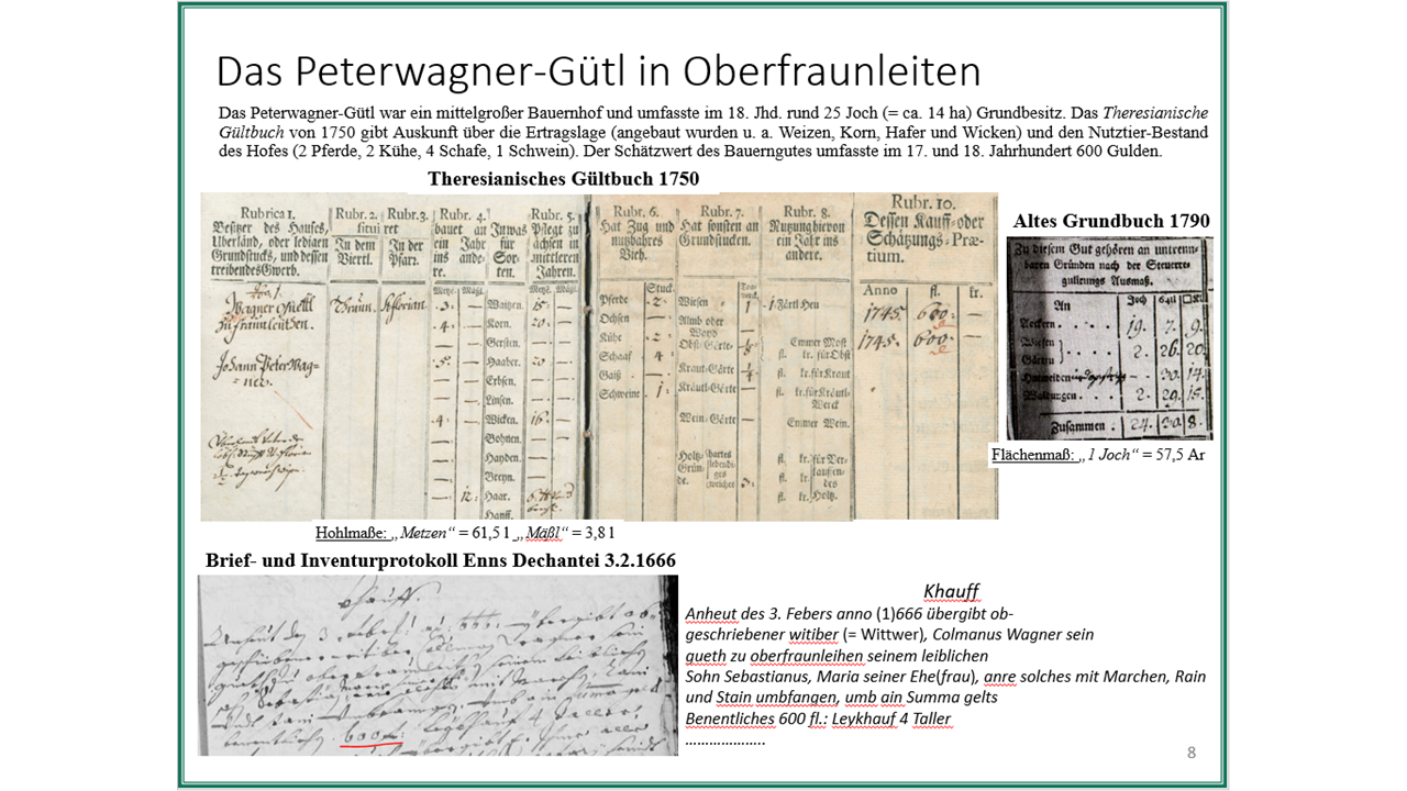 Grundherrschaftliche Aufzeichnungen: Inventurprotokolle, Heirats- und Kaufprotokolle, alte Grundbücher, Urbare