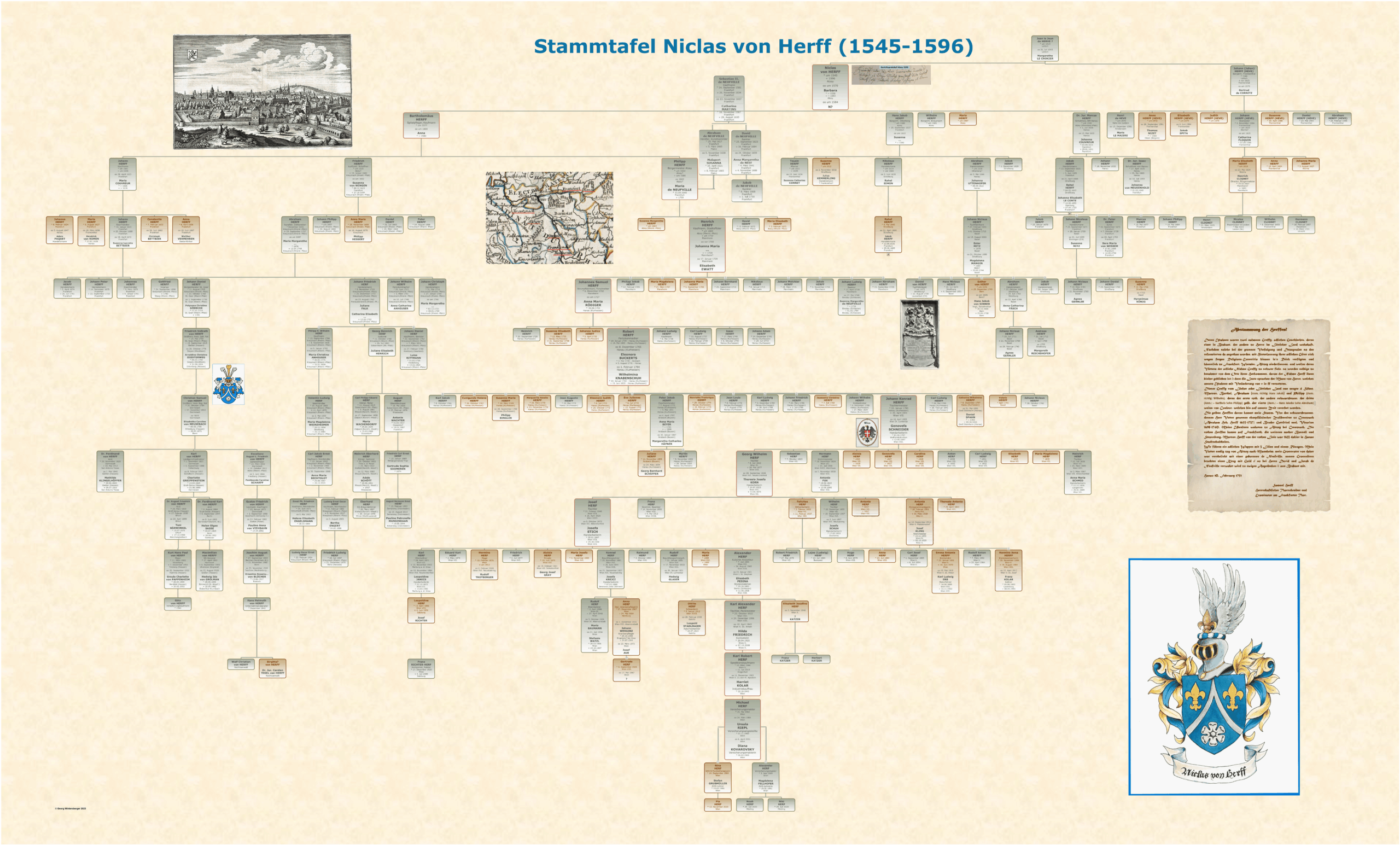 Die Tafeln erstelle ich mit der genealogischen Software Heredis. Für sehr große Ahnentafeln oder individuell handgemalte Stammbäume arbeite ich bei Bedarf mit dem Stammbaumatellier Rosenlechner zusammen.